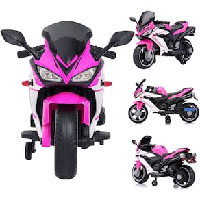 Com estrutura robusta em plástico de alta resistência e reforços em aço carbono, essa moto elétrica oferece assento confortável, apoio para os pés e rodinhas de apoio que aumentam a estabilidade, tudo para que a criança possa se divertir com mais confiança.