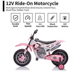 RODAS DE FORMAÇÃO PARA SEGURANÇA MAIS ALTA Existem 2 rodas de treinamento removíveis que mantêm a bicicleta elétrica de sujeira o mais estável possível para permitir maior segurança. Motive seu filho para ficar com este divertido e emocionante veículo de brinquedo. Não se esqueça de desconectar as rodas de treinamento para obter uma direção mais suave quando o seu filho estiver pronto para desfrutar de dirigir uma moto elétrica. Além disso, a motocicleta foi projetada com mola de absorção de choque, garantindo que ela se mova suavemente.