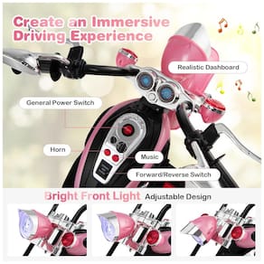 Presente perfeito para crianças A motocicleta elétrica para crianças apresenta o estilo chopper, será o melhor presente para o aniversário da criança ou Natal com mais de 3 anos. A velocidade adequada com a função de entretenimento ajuda as crianças a melhorar o relacionamento entre pais e filhos e deixa as crianças com boas lembranças da infância. 3 Rodas para Exercitar o Equilíbrio Existem três rodas que constituem a estrutura triangular para treinamento ultra e de equilíbrio. Equipado com espelhos retrovisores, música e faróis, este passeio infantil de motocicleta com escala real pode trazer a experiência de direção mais real com o botão de direção para frente e para trás e pedal, para que eles sintam a alegria e a emoção de cavalgar. Várias funções de entretenimento Botões fáceis de operar permitem que a criança ande de motocicleta combinando funções educacionais e de entretenimento para adicionar diversão e alegria enquanto as crianças estão dirigindo. E farol é capaz de trazer brilho na escuridão. Materiais saudáveis e s Feito de materiais PP ecológicos e ferro forte de alta qualidade, este passeio em motocicleta de brinquedo garante estabilidade e toque suave para a pele. E o assento curvo que se ajusta bem à curva do corpo das crianças é capaz de melhorar o nível de conforto ao dirigir Marca: Não Informado