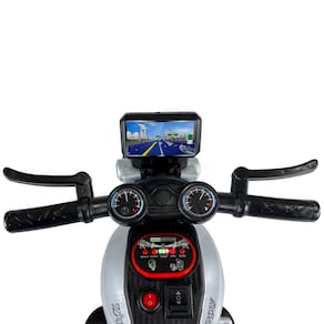 Design, Segurança e Usabilidade: Estrutura resistente de plástico e componentes metálicos, com 3 rodas robustas e estáveis para melhor equilíbrio. Controles intuitivo, aceleração por pedal e frenagem fácil — projetados para uso infantil. Farol com luz de LED funcional e sistema de som integrado que aumentam o engajamento na brincadeira. Botão liga e desliga e botão frente e ré, que garante uma pilotagem mais radical.