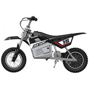 MOTOR PODEROSO Alimentado por um motor a corrente de 250 watts, alta velocidade e velocidade variável, que proporciona diversão eletrizante a velocidades de até 14 mph 22 km , h com 13 anos ou mais Dimensões 44 x 24,5 x 31,0 polegadas 111 x 62 x 78 centímetros BATERIA DE ampla variedade LONGA O sistema recarregável de bateria de grafite ácido 24V dois 12V fornece até 30 minutos de uso contínuo, além de criar conforto, confiança e controle. Leva 12 horas para carregar totalmente SEGURANÇA E CONFORTO A bicicleta elétrica de sujeira Razor Dirt Rocket MX400 rasou pneus de 12 polegadas com botões pneumáticos que ajudam a suavizar superfícies ásperas para um passeio suave e dobráveis em pinos de metal DÚRAVEL Uma estrutura totalmente em aço com autêntica geometria da bicicleta de sujeira proporciona um passeio sólido fora de estrada com um peso máximo de 140 libras. 64 kg CARACTERÍSTICAS EXTRA Recursos adicionais incluem alças de borracha macias com controle de aceleração por torção para facilitar a aceleração, freio traseiro acionado à mão, carenagens de plástico resistentes a quebra, garfo de coroa duplo e suporte retrátil Marca: Não Informado