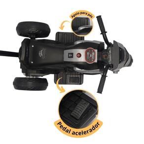 -Empurrador Dirigível: Permite que um adulto controle a direção com facilidade e segurança. -Velocidade Máxima de 3 km/h: Ideal para crianças pequenas, oferecendo uma experiência segura e divertida. -Painel: Que simula a velocidade -Bateria Recarregável 6V: Energia de sobra para a brincadeira. -Motor de 380w: Potência adequada para passeios suaves. -Autonomia de 1 a 2 horas: Diversão prolongada com uma única carga. -Acompanha carregador, e o tempo de recarga varia entre 8 a 12 horas. -Luzes e Sons: Efeitos realistas que encantam e estimulam a imaginação. -Design Race na Cor Cinza: Estilo moderno e atrativo. -Buzina -Botão liga e desliga -Botão seletor frente e ré -Pedal acelerador -Apoio para os pés -Rodas: Plástico -Peso Suportado: 30 kg -Idade Sugerida: Acima 3 anos -Dimensões do produto: 75x40x80 cm -Peso produto: 5,9 kg -Dimensões da embalagem produto: 54x37x35 cm -Peso embalagem produto: 6,7 kg