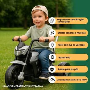 Leve a diversão e a aventura para outro nível com a Moto Elétrica Race Cinza! Com design esportivo, ela é perfeita para os pequenos pilotos que adoram emoção com segurança.