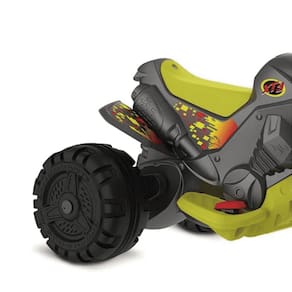 Robusta e divertida Para alegria dos pequenos temos duas lindas cores disponíveis pra serem escolhidas, a cor Pink e a Titanium. Ela também está mais divertida, com vários relevos imitando peças de moto, trazendo assim a imaginação mais perto da realidade possível, ainda contamos com diversos adesivos espalhados pelo copo do brinquedo. Sua velocidade aproximada é de 3,5 Km/h.