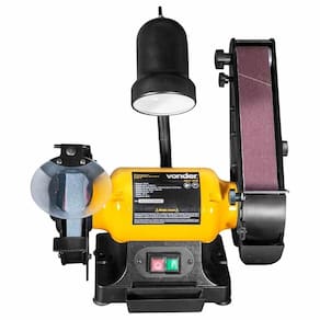 Os lados do motoesmeril combinado possuem base de apoio para a peça a ser trabalhada, garantindo estabilidade e segurança durante o uso. Além disso, conta com um interruptor eletromagnético que desliga automaticamente o equipamento em caso de queda ou falta de energia, garantindo a sua segurança.