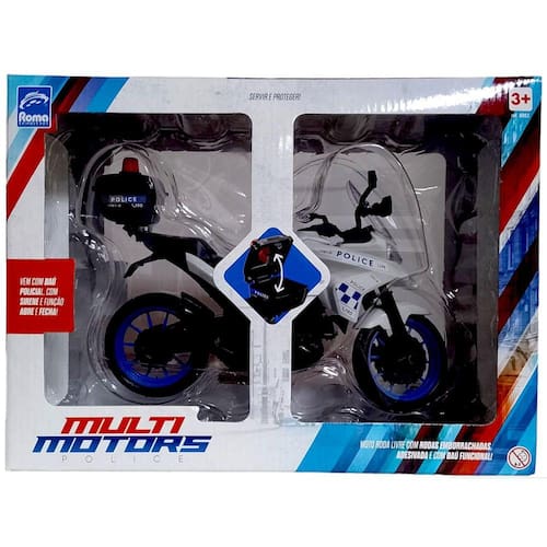 Adrenalina em 4 tipos de terreno, muita emoção e aventura!! Moto Roma Multi Motors da Policia é bastante diferenciada: possui pneus de borracha, faróis de acrílico, carenagem super realística, pezinho de descanso O Acabamento do produto é espetacular! Apropriada para diversas aventuras, tudo que os pequenos motoqueiros precisam!!