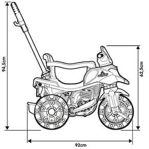 Dimensões: 94,5 cm Altura com a haste x 62,5 cm Altura até o guidão x 92 cm Comprimento total