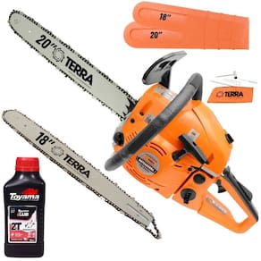 Motosserra Terra MT520 À Gasolina 2T 2,5HP 52cc Com Sabres de 18'' e Sabre de 20'' + Óleo Toyama FG50 500ml 2T