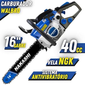 ESPECIFICAÇÕES TÉCNICAS: - Código: 55-600010 - Modelo: NCS 400 - Motor: 2 Tempos - Cilindradas: 40,1cc - Sabre: 16'' - Corrente: 3/8" - perfil baixo x.050" - 57E - Bomba de óleo: Automática - Freio de corrente: Automático, inercial - Capacidade do tanque de combustível: 390 ml - Nível de vibração: 5,848 m/s2 - Nível de ruído (lpa): 101,82 dB(A) - Peso líquido (sem sabre): 4,3 kg