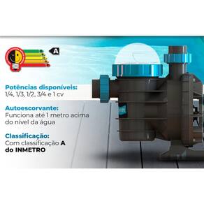 Esta motobomba acompanha 2 uniões para encaixe no tubo de 50 mm; Ela tem sua ligação elétrica monofásica 220 volts qualquer duvida consulte-nos no campo de perguntas Compativel com filtros da sodramar : fm25 e fm30 para outros filtros consulte-nos no campo de perguntas A sodramar oferece o que há de mais avançado em tecnologia de motobombas, purificando a água e priorizando a qualidade do lazer e a saúde dos usuários. As motobombas residenciais sodramar, são constituídas de material resistente e a prova de corrosão, possuem alta vazão, atuando com eficiência e segurança; além de serem auto-escorvantes, permitindo que trabalhem acima do nível da água. Os modelos variam de 1/4 à 1cv e sem dúvidas, este produto atenderá sua necessidade de forma satisfatória. A bomba bmc-25 t.U está disponível com ligação monofásica 220v . Informações gerais: Comprimento = 52 cm Largura = 24 cm Altura = 35 cm Pressão mca x m/h = 2 mca = 10,5 m/h 4 mca = 8,4 m/h 6 mca = 6 m/h 8 mca = 4,7 m/h Motobomba segue com pré filtro e cesto coletor; Produto possui de 12 meses direto com a fábrica a sodramar possui assitência técnica em todo território nacional Marca: Não Informado