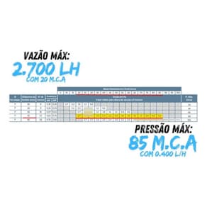 - Vazão máxima: 3, m³/h.