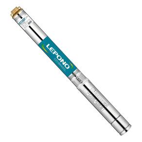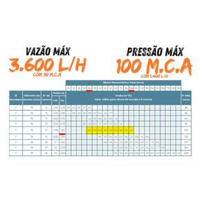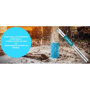 Bomba: - Corpo da bomba em aço inox AISI 304 - Bocal de recalque em bronza e intermediário do motor em aço inox AISI 304 - Imersão máxima: 100 metros - Rotor centrífugo fechado em poliacetal - Eixo em aço inox AISI 304 - Rotores flutuantes - PH do líquido: 6-8 - Quantidade máxima de areia na água: 40 gr/m³