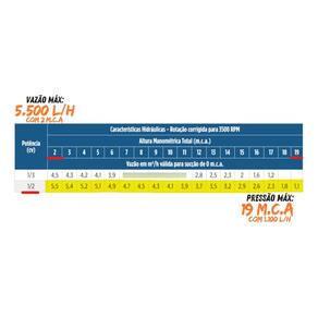 Temperatura máxima do líquido bombeado: 55 °C. Equipamento desenvolvido para uso exclusivamente residencial.