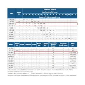 Especificações Técnicas: Bocais com rosca BSP Rotor fechado de alumínio ou bronze Eixo de aço inox AISI-420 Selo mecânico constituído de aço inox AISI-304, buna N, grafite e cerâmica (ME-AL) e Viton, grafite e cerâmica (ME-BR) Lateral de entrada, divisão, corpo de saída e intermediário de ferro fundido Potência: 2 cv Tensão: 127/220 Volts Fase: Monofásica