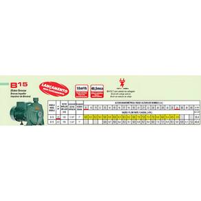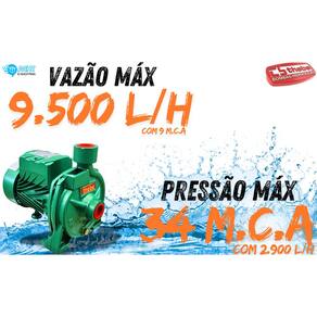 - Motobomba Centrífuga Monoestágio - Monobloco - Motor Monofásico , 60Hz, 3500rpm. - Bocais com rosca BSP, Sucção 1.1/4" x Recalque 1". - Eixo ponta em inox - Utilizada para água limpa até temperatura de 70ºC - Rotor fechado em Bronze - Anel O'ring de vedação da carcaça em Buna N. - Selo mecânico: Faces em grafite e cerâmica. Mola em inox 304 e elastômero (borracha) em Buna N.