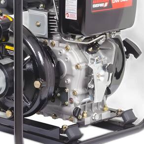 Resposta: Ela possui um motor diesel de 10 HP. Pergunta: Qual o diâmetro das conexões de entrada e saída?