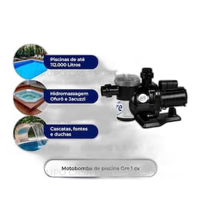 DADOS TÉCNICOS: Potência: 1/3 CV Ideal para Piscinas de até: 30.000 Litros Vazão: 3800 L/h Tipo: Autoescorvante Alimentação: Elétrica Tensão Elétrica: Monofásica 110/220V Frequência: 60 Hz Marca: Não Informado