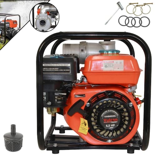A motobomba VMB653S á gasolina da Vulcan foi desenvolvida com alta performance para possibilitar o bombeamento de água em locais sem energia elétrica. Equipada com motor 4 tempos trabalha com força, alta potência e bomba de alta vazão, tem como principais beneficios de ultilização: transferência de água na elevação de caixas d água; irrigação de pomares e hortas; abastecimento de pulverizadores; construção civil; carros pipa; etc.