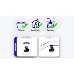 - Aplicações residenciais - Limpeza de caixas d’água, poços, reservatórios e cisternas - Drenagem de pequenas piscinas, porões e garagens