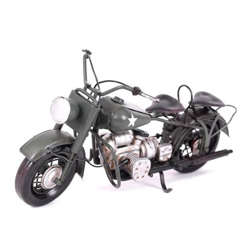 DPD01094 - Peça de Decoração VintageEste enfeite trás de volta ao período da II Guerra Mundial, quando o Indian Scount 500 foi largamente usada pelo exército americano no combate às forças nazistas. Sinônimo de estilo, beleza, uma verdadeira obra de arte, que une tecnologia e modernidade com história e passado.Foi cuidadosamente trabalhado para refletir com a mais precisa exatidão o modelo que marcou a II Guerra Mundial.Realmente para amantes de motocicletasNosso grupo está no mercado desde 1997. Com base nessa sólida estrutura, o E-Commerce veio realçar ainda mais a nossa missão: levar ao consumidor não só um produto, mas uma experiência on-line diferenciada. Marca: Le Casa