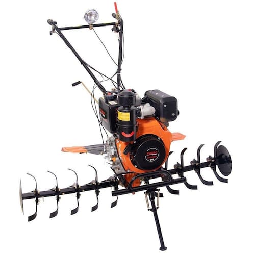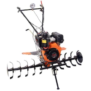 O Motocultivador a Diesel VMCE900D Vulcan Trent, possui motor com potência de 406cc e 9HP, indicado para utilização profissional em propriedades rurais em diferentes tipos de trabalhos, como em hortas, pastos e camas de aviários. Com partida elétrica e bateria 12V – 18A, 2 marchas e ré torna o motocultivador um equipamento leve e fácil de manusear. O filtro de ar banhado a óleo permite que este equipamento seja utilizado em ambientes com poeira. É equipado com 5 conjuntos de 3 facas no lado direito e 5 conjuntos de 3 facas no lado esquerdo o que permite uma largura de corte de 1.350mm e farol que auxilia na condução em locais de baixa luminosidade. Ambiente Principal: Área de Serviço Área de corte máxima: 135 Composição: Aço Forjado Comprimento: 160 Cor Predominante: Laranja Função: Cortar;Limpeza;Organizar;Variar Itens Inclusos: Facas: Lado direito com 5 conjuntos de 3 facas / Lado esquerdo com 5 conjuntos de 3 facas;2 Pneus - 4" x 8" Largura: 80 Linha ou Coleção: VMCE900D Manual de Montagem e Instalação: https://cdn2.madeiramadeira.com.br/atributo/vulcan-ferramentas/1231831-manual-motocultivador-vmce900d.pdf Material Principal: Aço Forjado Medida de Cada Item: 105 Modelo: VMCE900D Necessita Montagem: Sim Origem do Produto: Importado Peso: 84 Possui punho auxiliar: Sim Recomendações de Uso, Manutenção e Limpeza: Vide manual Tipo de Mecanismo: Rotativo Tubo bi-partido: Sim Velocidade: 3600
