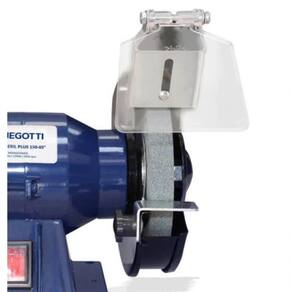 - Equipamento com proteção de acrílico articulável para os dois rebolos (um rebolo para desbaste e outro para acabamento);