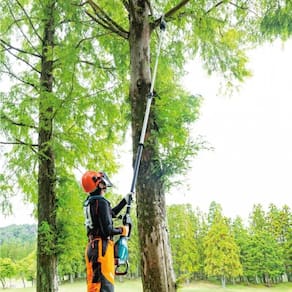 A Motopoda UA004GZ da Makita possui motor BL de alta potência, oferecendo eficiência comparável aos modelos a combustão de 35 cc. Sua velocidade de corrente é superior aos concorrentes, facilitando cortes confortáveis. O modo Boost permite cortar troncos ou galhos grossos, e a tampa do tanque de óleo retrátil evita que o cabeçote de corte fique preso. É ideal para poda de árvores altas e possui um gancho de galho integrado. Com a tecnologia XPT, é resistente à água e poeira, e a tecnologia AFT desliga o motor se a rotação diminuir repentinamente. Não há necessidade de manutenção de óleo ou limpeza de filtro.