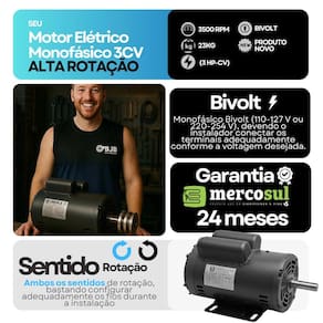 1. Esse motor é bivolt Como faço a ligação correta Sim, o motor é monofásico bivolt, operando em redes de 110-127V ou 220-254V. A ligação correta depende da tensão da rede e deve ser feita conforme o diagrama que acompanha o produto. 2. O motor já vem com polia e capacitor O motor acompanha o capacitor de partida. A polia não está inclusa na versão padrão e deve ser adquirida separadamente, salvo em kits específicos que já incluem a polia. 3. Qual o diâmetro do eixo e o tamanho da chaveta O eixo possui diâmetro de 19,05 mm 3/4 e a chaveta tem 4,76 mm 3/16 , medidas padrão para a maioria das aplicações industriais. 4. Esse motor é compatível com compressores de ar Sim, ele é ideal para compressores de até 15 pés/min e tanques entre 150 e 200 litros, incluindo modelos de 2 estágios. Oferece torque suficiente para aplicações industriais. 5. Pode ser em serras circulares ou policorte Sim, o motor é indicado para serras de bancada, esquadrejadeiras e máquinas de corte. Sua alta rotação e potência garantem desempenho estável para cortes em madeira ou metal. 6. Serve para bombas dágua, lavadoras ou forrageiras Sim, o motor pode ser em bombas hidráulicas, lavadoras , moto-esmeris, forrageiras e outros equipamentos agrícolas e industriais. 7. Qual é o sentido de rotação do motor O motor permite rotação horária e anti-horária. A inversão do sentido pode ser feita na instalação, conforme orientações do diagrama de ligação. 8. É necessário usar chave de partida Não. O motor é de partida direta e já acompanha o capacitor. Pode ser ligado diretamente à rede elétrica, com proteção adequada no disjuntor. 10. Vai com polia Sim, acompanha polia grau de proteção: IP21; - Carcaça: 56 NEMA MG1; - Tensão: 110-127/220-254 V; - Frequência: 60 Hz; - Classe de isolação: F 155 C ; - Diâmetro do Eixo: 19,05mm ou 3/4 de polegada; - Tamanho da chaveta do eixo: 4,76mm ou 3/16 de polegada; - Fabricante: Mercosul Motores; -tecnologia Eberle. Marca: Não Informado
