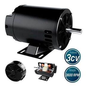 Especificações: - Potência: 3 cv; - Polaridade: 2 pólos; - Categoria: ?N?, conforme ABNT NBR 17094-1; - Grau de proteção: conforme ABNT NBR IEC60034-5; - Tensão: 220/380V; - Frequência: 60Hz; - Isolamento: 130°C (Classe ?B?); - Carcaças normalizadas, conforme NEMA MG 1: 48, 56, 56H e 182/4T; - Cor: cinza MUNSELL 6,5. - Rotação: 3600 rpm - Chaveta do eixo com comprimento 37mm x largura 3mm x altura de 3mm padrão - Diâmetro do eixo de 19mm