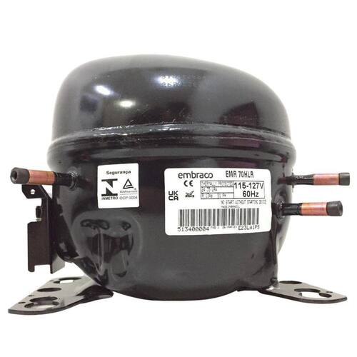 Marca: Embraco Potência: 1/5 HP Gás Refrigerante: R134A Tensão: 115-127V Frequência: 60 HZ Características Técnicas: Níveis de ruído e vibração baixos; Níveis de eficiência padrão, médio, premium; Disponíveis para fluídos R 600a Projetados para aplicações domésticas e comerciais de médio porte.