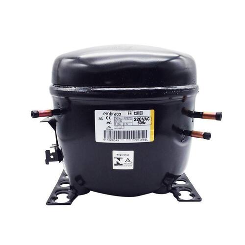Motor compressor embraco 1/3+ ffi 12 hbx 220v r134 A série embraco f apresenta três níveis de eficiência padrão, média e alta e seus compressores são utilizados em aplicações comerciais de médio porte como expositores verticais e freezers horizontais para sorvetes. Possui ampla faixa de capacidade e modelos de alto e baixo torque de partida. O compressor é um equipamento industrial utilizado para aumentar a pressão de fluidos em estado gasoso,tais como ar, vapor dágua, hidrogênio,e é o principal item produzido pela embraco. Empregado na fabricação de sistemas de refrigeração. O compressor é o coraçãode um sistema de refrigeração. Sua função é bombear o fluido refrigerante que circula por todo o sistema ora no estado líquido, ora no estado gasoso, no processo de resfriamento de uma geladeira, por exemplo, o compressor recebe o fluido na forma de gás do evaporador, e promove o bombeamento desse gás até o condensador, aparelho que torna a liquidificar o fluido e dissipar o calor do sistema. Especificação técnica Desenvolvidos para aplicações l/m/hbp; Ampla faixa de capacidade; Níveis de eficiência padrão, média e alta; Disponíveis para fluidos r 134a e r 600a, r290; Projetados para aplicações domésticas e comerciais de médio porte. Manual de boas práticas ao consumidor Para evitar qualquer futuro dano no seu produto, siga atentamente o manual de boas práticas antes de inicar a instalação: Para instalação e /ou manutenção, solicite o serviço de um técnico ou profissional de refrigeração capacitado; Utilize somente a carga de gás compatível na quantidade correta não podendo faltar nem ultrapassar ; Certifique-se que o sistema elétrico esteja instalado corretamente conforme as especificações do fabricante; Ainda no sistema elétrico, confirme a voltagem para evitar danos elétricos; Nos casos em que o compressor for substitúido, é necessário substituir também o filtro secador; Efetue sempre o vácuo no sistema. É necessário que o sistema esteja bem selado para obter uma performance mais eficiente; Em caso de substituição do compressor, é de extrema importância executar a limpeza no sistema com o fluído 141b;Alguns modelos compatíveis: Brd32b brd33a br31a brd35a bvg24d Bvg24f bvg24g bvs26b bv26c Crd33a crd33b crd34b crd35d crd36f Crd36g crd37e crd37z cv18e cv18f Cvu26b cvu26c cvu26d cha22c