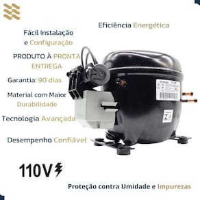 Eficiência e Confiabilidade: Este conjunto é projetado para oferecer eficiência energética, desempenho estável e confiabilidade. A tecnologia avançada da Embraco garante que o compressor opere com baixo nível de ruído e mantenha temperaturas consistentes, essenciais para a preservação de alimentos, produtos e outras mercadorias.