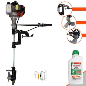 ITENS INCLUSOS: 01: Motor com rabeta; 01: ÓLEO CASTROL STIHL 2T; 01: hélice 3 pás; 01: dosador de combustível; 01: jogo de chave; 01: manual do usuário.