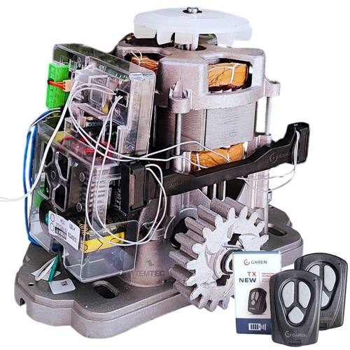 ESPECIFICAÇÕES -Tensão: 110/127V e/ou 220V ( chave seletora ); -Portões até 900 kg; -RPM: 1750; -Tempo de abertura: 4 segundos ( portão de 3 metros utilizado como base para cálculo ); -Relé termostático; -Frequência 433,92 Mhz; -Fio de 180 graus; -Central de comandos embarcada e dedicada; -Possui entrada para fotocélula; -Motor e Central de comando trifásica; -Programação através de display; -Aceita o módulo wifi, caso o cliente o compre à parte; -Aceita a placa 8F, para utilizar trava elétrica, luz de garagem e sinaleira, caso o cliente o compre à parte; -3 maneiras de configuração: -Direto na central via jumper; -Pelo app Garen; -Pelo Garen Setup; -Central de comando NEW TSI; -Memória externa substituível; -Receptor heteródino; -Ajuste de velocidade de rampa; -Com microcontrolador; -Ajuste de embreagem e força; -Armazenamento de 511 posições. -Ventoinha; -Alta velocidade de acionamento; -Cadastra mais de 300 botões; -Carenagem com proteção UV; -Destravamento por chave(em caso de falta de energia); -Potência: 1/2 CV.
