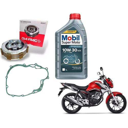 Itens inclusos: Jogo Discos De Embreagem - 01 Plator - 01 Cubo - Jogo Separadores - 01 Junta Compativel Com: Cg 160 - Titan 160 - Fan 160 - Bros 160 - Nxr 160 - Cargo 160 - Xre 190 Para Os Anos: 2015 - 2016 - 2017 - 2018 - 2019 - 2020 - 2021 - 2022 - 2023 Marca Fabricante Embreagem: Diafrag Marca Fabricante Junta: Dvsc Marca Fabricante Oleo: Mobil Modelo Oleo: 4T Semissintetico 10w30 Api Sl Disponibilidade Imediata