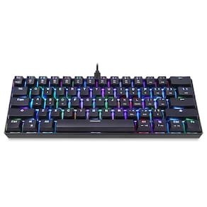 MOTOSPEED CK61 RGB Mechanical Gaming Keyboard OUTMU Switch Keyboard [OUTMU Red Switch] Os interruptores vermelhos da OUTMU podem reduzir a exão da mola da folha, além de serem à prova d'água e à prova de poeira. [Mecânica] 61 teclas, chip de jogo embutido, tecnologia avançada de interruptor mecânico, dão-lhe uma sensação mais agradável. [Anti-ghosting] Anti-fantasma de todas as teclas, 800 milhões de vezes de vida útil do teclado, dando-lhe uma melhor sensação de toque. [Compatível] Compatível com computador com porta USB2.0, como WIN2000/XP/VISTA/7/8/10. [Iluminação] Iluminação RGB por tecla para atender às demandas dos jogadores, diferentes efeitos de iluminação para diferentes tipos de jogos. A digitação do teclado para jogos é suave e fácil com um leve clique. Expresse-se com controle de iluminação RGB avançado e interruptor OUTMU Red. Características: Interruptor vermelho OUTMU: Os interruptores vermelhos OUTMU podem reduzir a exão da folha da mola, juntamente com resistente à água e poeira. Mecânica: 61 teclas, chip de jogo embutido, tecnologia avançada de interruptor mecânico, dá-lhe uma sensação mais agradável. Anti-ghosting: All-key anti-ghosting, 800 milhões de vezes de vida útil do teclado, dando-lhe uma melhor sensação de toque. Compatível: Compatível com computador com porta USB2.0, como para WIN2000/XP/VISTA/7/8/10. Iluminação: Iluminação RGB por tecla para atender às demandas dos jogadores, diferentes efeitos de iluminação para diferentes tipos de jogos. Especificações: Marca: MOTOSPEED Modelo: CK61 Material: Plástico Durabilidade: 800milhões Número de chaves: 61keys Interface: USB Switches: Rede Anti-ghosting: NKRO Corrente de trabalho: 300mA Tensão de trabalho: 5V Cor: Preto: para WIN2000/XP/VISTA/ WIN7/WIN8/WIN10 Tamanho do item principal: Aprox. 28.5cm * 9cm * 1.8cm / 11.2in * 3.5in * 0.7in Peso do produto: Aprox. 437g / 15.4oz Tamanho do pacote: Aprox. 31.6cm * 13cm * 6.9cm * / 12.4in * 5in * 2.7in Peso da embalagem: Aprox. 612g / 21.58oz