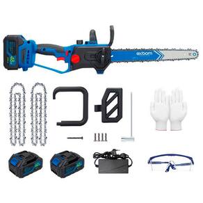 1x Motosserra Elétrica 1x Maleta de ferramentas de plástico 2x Baterias de lítio 20000mAh 2x Correntes de 12 polegadas 1x Luva de segurança 1x Sabre 1x Alça 1x Freio de segurança/Guarda de proteção 1x Óculos de proteção 1x Garrafa de óleo lubrificante 1x Parafuso para fixação do sabre 4x Parafusos para fixação da alça 1x Carregador 1x Manual