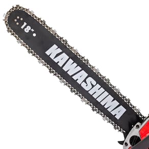 Motosserra Kawashima contém um design moderno, excelente acabamento, com componentes reforçados. Pode ser usado em cortes de madeiras, uso agrícola e em corte de galhos . O produto possui diversos sistemas de segurança como: trava de segurança do acelerador, protetor da mão esquerda e direita, pino pega corrente e freio automático de corrente.