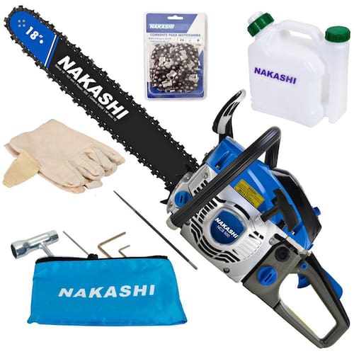 Motosserra Nakashi desenvolvida para o uso profissional, produzida com matérias primas e componentes de primeira linha que proporcionam excelente rendimento e grande resistência ao equipamento. São produzidas com materiais de altíssima resistência e grande parte do processo de montagem é executado por máquinas, o que confere amior precisão na montagem.