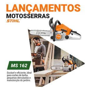 Para uso doméstico, especialmente quando se trata de corte de lenha e manutenção de pequenas árvores a STIHL traz a nova Motosserra a combustão MS 162. Uma evolução de tecnologia e potência em comparação com versões anteriores. Ela possui um motor a gasolina de 2 tempos com 1,3 kW de potência, tornando-a adequada para uso em casa e em pequenas propriedades. Ideal para cortar lenha e galhos de árvores de tamanho médio. Além disso, a motosserra possui um sistema de lubrificação automática da corrente, o que prolonga sua vida útil. Com um peso de cerca de 4,5 kg, ela é fácil de manusear e não causa fadiga excessiva durante o uso prolongado.