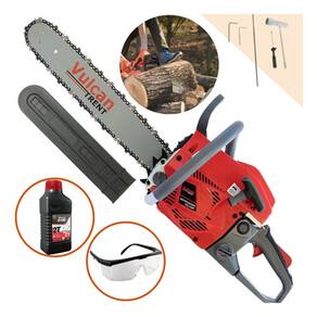 Ficha Técnica: Marca: Vulcan Trent Modelo: VSL550P Motor: 2 tempos Potência: 3,3Hp Cilindrada: 55CC Rotação Máxima: 13.000 RPM Rotação na lenta: 3.000 RPM Sabre: VULCAN 18” (46cm) Ponta rolante - Canal 1,50mm Corrente: 32 dentes Passo: 3/8” Bitola: 1,5mm Ignição: Eletrônica Arranque: Manual com mola retrátil Amortecedores: 5 amortecedores em toda a máquina Carburador: Membranas de alta eficiência Combustível: Gasolina com Óleo – Proporção 25:1 Tanque do Combustível: 550ml Tanque do Óleo: 260ml Consumo: Aproximadamente 1L por hora Autonomia: Aproximadamente 30 min Peso do produto: 6,650kg Peso com embalagem: 7,750kg Dimensões do Produto: 27 x 25 x 82 (montado com sabre) Embalagem 1 peça - Caixa 30 x 27 x 47cm Itens e acessórios na(s) caixa(s): Sabre 18", Corrente 32 Dentes, Protetor do Sabre, Dosador de Combustível, Jogo de Chave, Limas de Corrente.