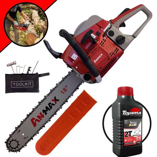 Motosserra ANMAX CS5200B À Gasolina 2T 52cc 2,7HP Sabre 18'' (45cm) Ponta Rolante Profissional+ Óleo TOYAMA LUB FG50 500ml 2T
