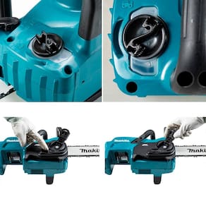 A Motosserra a Bateria DUC307ZC da Makita combina praticidade e potência sem depender de combustível ou fios, sendo ideal para jardinagem, poda e pequenos cortes em propriedades rurais. Leve e silenciosa, ela facilita o manuseio com uma sede de óleos visível para reabastecer sem perder tempo, além de incorporar freios que interrompem a corrente com segurança. A lubrificação automática da corrente torna a operação mais tranquila e eficiente.