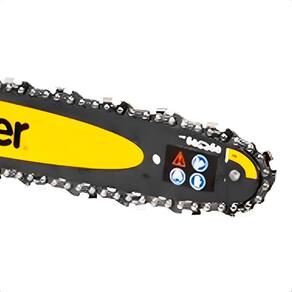 Possui freio automático de corrente, pino pega-corrente, protetores de mão esquerda e direita e trava de segurança do gatilho, além de dupla isolação, que garante maior segurança ao operador.