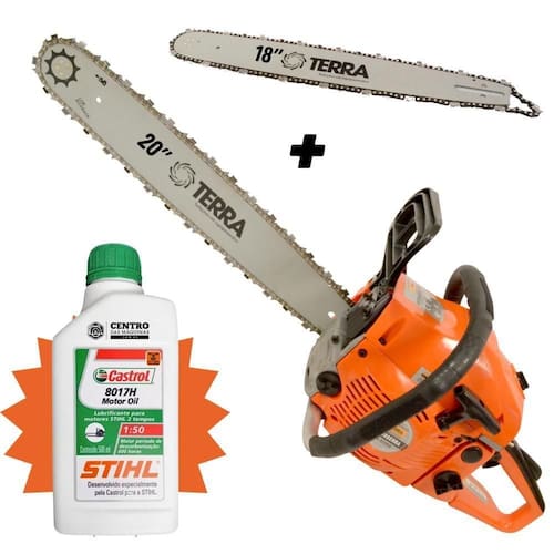 Motosserra Terra MT520 À Gasolina 2T 2,5HP 52cc Com Sabres de 18'' e 20'' + Óleo Castrol Stihl 500ml