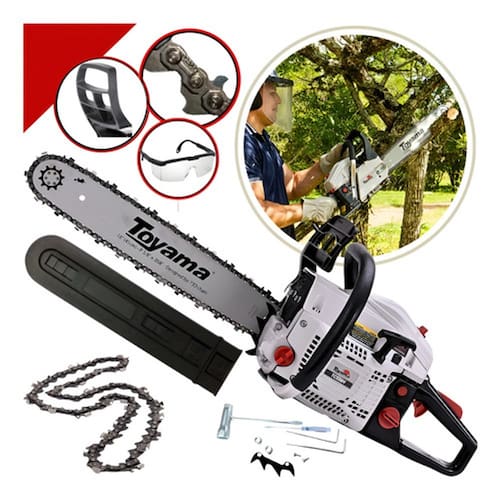 Motosserra Toyama TCS58H, equipada com motor de 54,4cc e sabre de 18 polegadas de ponta rolante. Foram desenvolvidas e fabricadas especialmente para o usuário que busca qualidade de equipamento com baixo custo de aquisição. Para torná-la leve, durável e confiável utilizamos em sua produção, liga de alta resistência. Indicada para usuários que buscam atender suas necessidades de serviços leves e médios na poda e corte de árvores.