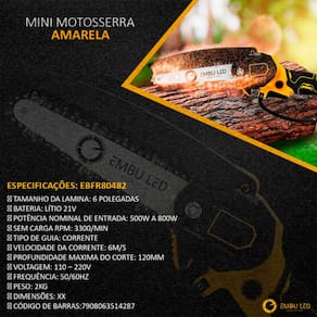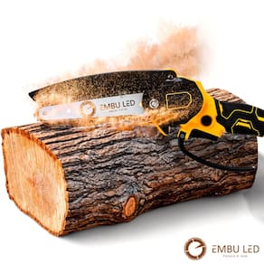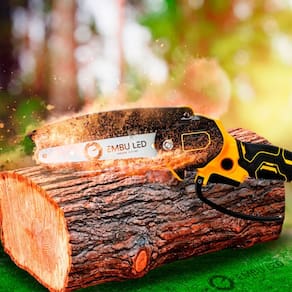 A mini motosserra elétrica da EmbuLED é ideal para podas, jardinagem e trabalhos leves em madeira, oferecendo excelente desempenho com mobilidade total. Com lâmina de 6" e alta velocidade da corrente, permite cortes precisos com segurança.