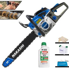 A Motosserra à Gasolina Nakashi NCS550 é uma máquina moderna, com potência e durabilidade para garantir de maneira eficiente a aplicação em todos os trabalhos de corte. A motosserra Nakashi é ideal para trabalhos de maior intensidade, é excepcionalmente leve, ergonômica e de fácil manuseio, ideal para corte e desdobra de madeiras, no corte e poda de galhos e árvores, paisagismo, grandes manutenções e carpintaria. Destaca-se por ser uma máquina de arranque rápido, de manutenção prática e fácil de operar.
