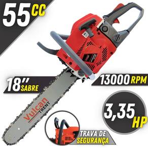 Motosserra Vulcan VSL550P À Gasolina 2T 55cc 3,35HP 11.000rpm Com Sabre Ponta Rolante 18" + Óleo Toyama FG50 500ml 2T