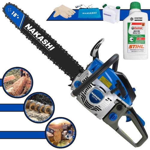 A Motosserra à Gasolina Nakashi NCS500 é uma máquina moderna, com potência e durabilidade para garantir de maneira eficiente a aplicação em todos os trabalhos de corte. A motosserra Toyama é ideal para trabalhos de maior intensidade, é excepcionalmente leve, ergonômica e de fácil manuseio, ideal para corte e desdobra de madeiras, no corte e poda de galhos e árvores, paisagismo, grandes manutenções e carpintaria. Destaca-se por ser uma máquina de arranque rápido, de manutenção prática e fácil de operar.